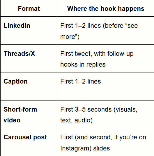 Hooks are also slightly different across each platform. And to create the best hooks, you need to match the hook with the format.